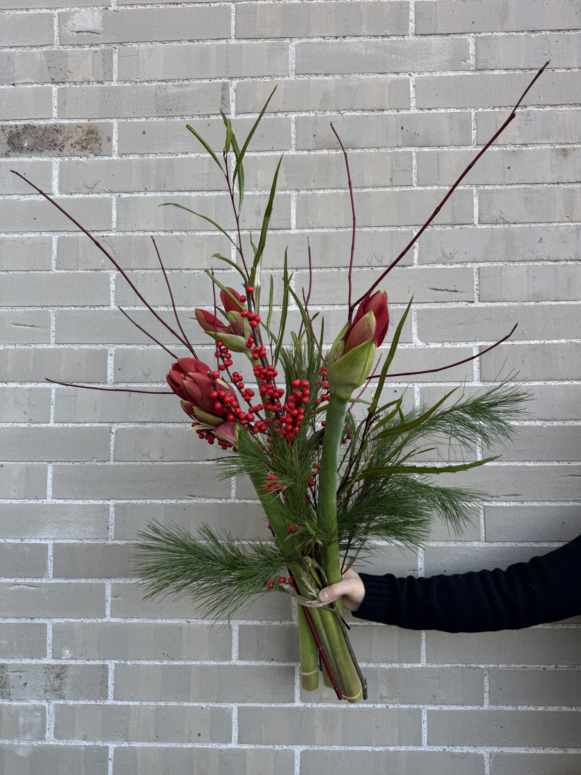 Kombiniert mit roten Winterbeeren passt dieses Gesteck hervorragend zu jeder Weihnachtsdekoration. Die Amaryllis ist die Weihnachtsblume schlechthin und ist somit ein beliebtes Geschenk in der Vorweihnachtszeit. Die Farbe rot versteht man hier sehr freundschaftlich und unaufdringlich.